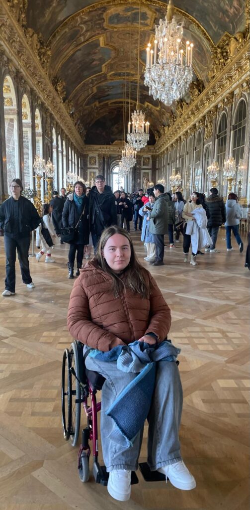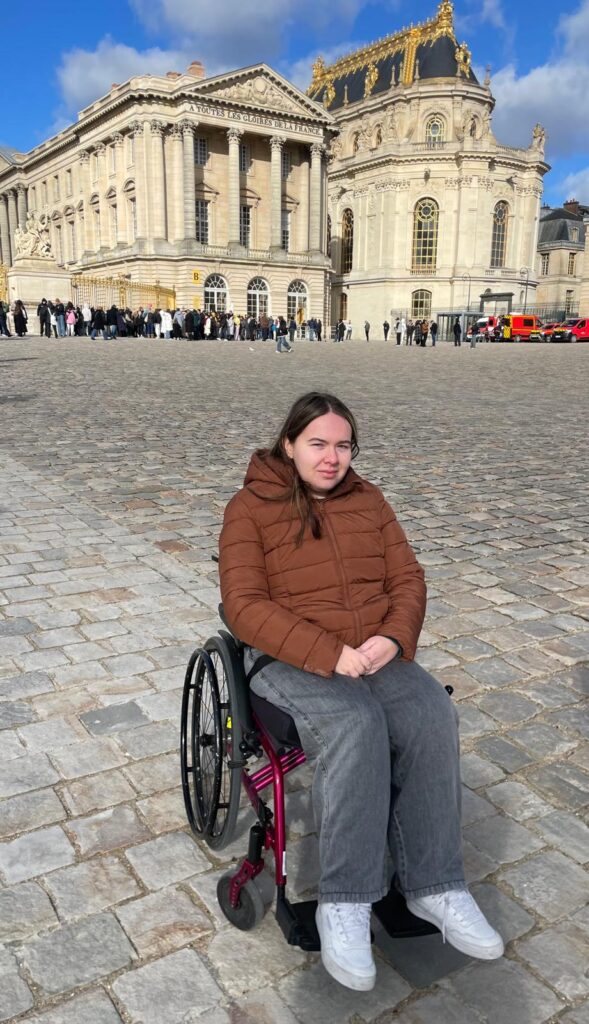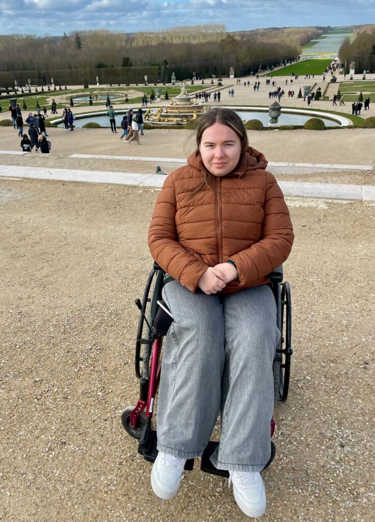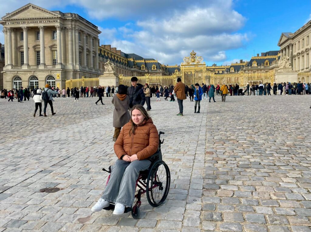 Co na to doprovod? Dostat se s vozíčkem do Versailles je poměrně problém. Jak už Síma psala, nakonec jsme využili Bolt. Nádvoří před vchodem do zámku představuje velkou výzvu pro doprovod – skoro celé jsme je jeli po zadních kolech a na tom zbytku jsme uvolnili přední kolečko. (Kdybyste bojovali s podobným problémem, ochotní hasiči sídlí vedle vchodu do kaple.) Výhodou jsou toalety v budově, v níž se prodávají vstupenky (při příchodu vlevo).